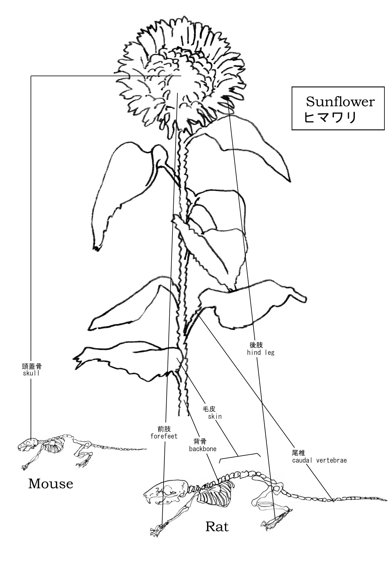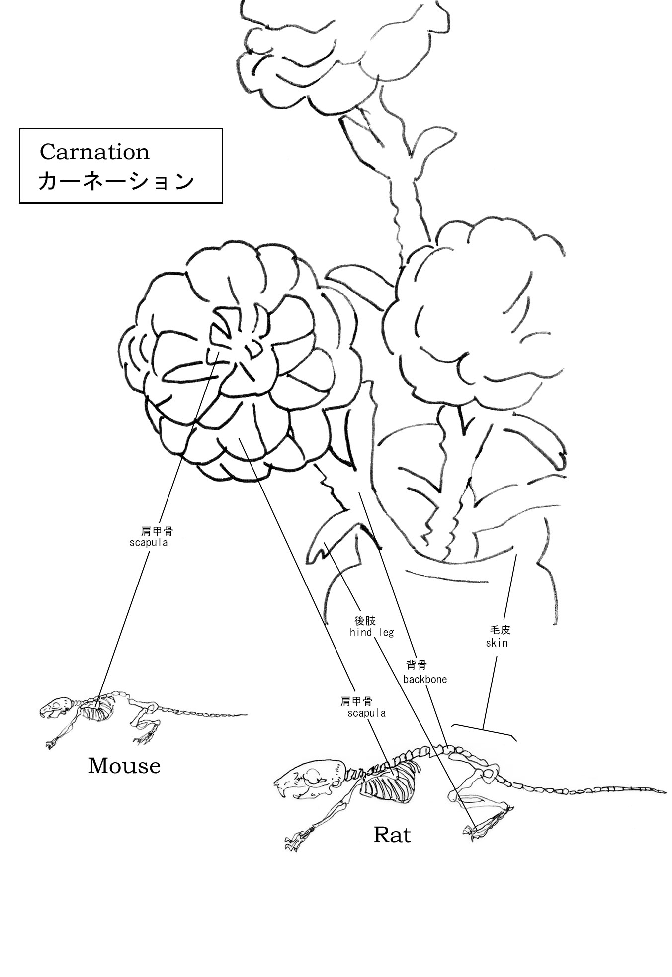 It is difficult to express flowers with bones which don't move.